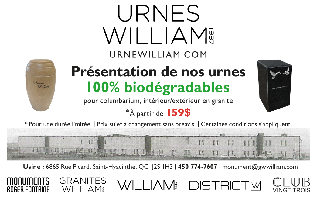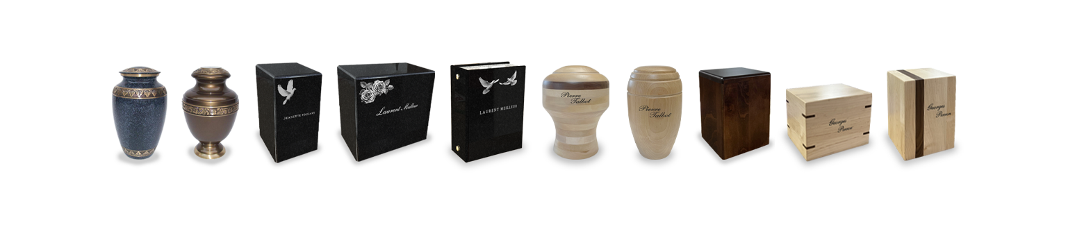 Couleurs urnes de bois - Deux couleurs - chocolat et preneur de l'aube - Monuments Roger Fontaine